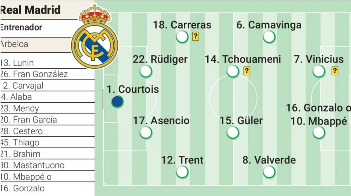 Возможный стартовый состав «Мадрида» на сегодня
