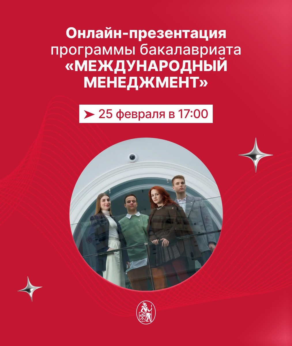 Изучайте глобальные стратегии, работайте в мультикультурной среде и стройте карьеру без границ. 📆 Сегодня в 17:00 приходите на онлайн-презентацию программы бакалавриата «Международный менеджмент». Кому подойдёт программа? Абитуриентам со свободным знанием английского языка, которые хотят развить навыки управления в международной бизнес-среде или создать собственный бизнес, ориентированный на международные рынки. Каждый предмет изучается в международном контексте и с учётом особенностей бизнеса в разных странах. Полученные знания позволяют выпускникам управлять международными операциями в компаниях по всему миру. Что даёт программа? 🔸 Фундаментальные знания в области международного менеджмента 🔸 Трек по финансам с изучением МСФО совместно со стратегическими партнёрами — ПАО ВТБ и Технологии Доверия 🔸 Курсы по выбору от экспертов из партнёрских организаций 🔸 Fast-track на стажировки в компаниях-партнёрах Что будет на презентации? ➡ Разберём структуру программы и её уникальные о