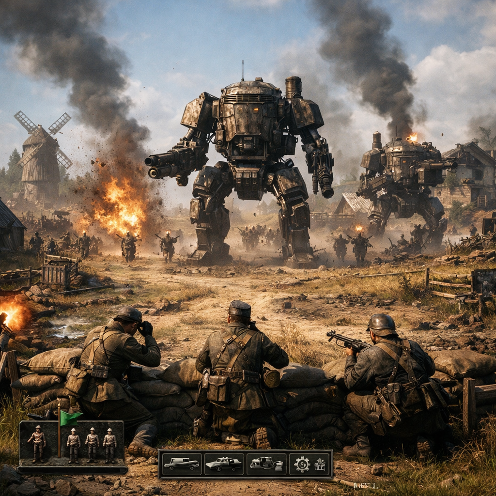 Тактика в духе Company of Heroes: В отличие от классических RTS, где нужно строить гигантские базы, здесь акцент сделан на микроконтроле небольших отрядов. Пехоте жизненно важно использовать укрытия, здания и фланговые обходы, чтобы выжить в схватке с тяжелыми машинами.
