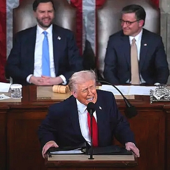 Хотя многие опросы показывают, что большинство граждан США недовольно экономической политикой Трампа, ключевым посланием его речи было: даже если вы этого еще не замечаете, Америка стоит на пороге нового золотого века. Вместо того чтобы признать, что ощущаемая инфляция для многих граждан все еще слишком высока, Трамп почти вызывающе указал на снизившийся уровень инфляции, низкие цены на бензин и триллионы обещанных инвестиций из-за рубежа.