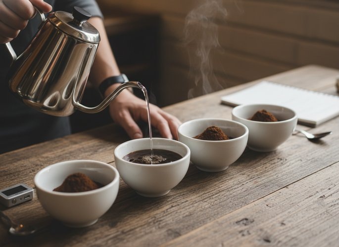 Главная задача — убрать субъективизм. Мы пробуем кофе как образец, а не как привычный напиток. Один из ключевых этапов — разрыв корки, или кофейной шапки, образующейся на поверхности. По протоколу Specialty Coffee Association (SCA), это действие позволяет высвободить летучие ароматические соединения и полнее оценить букет.