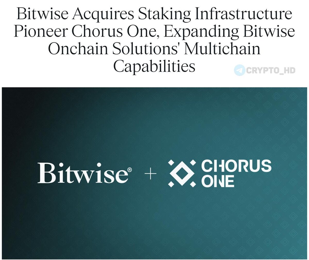 💸 В Bitwise завершили сделку по приобретению стейкинг-провайдера Chorus One