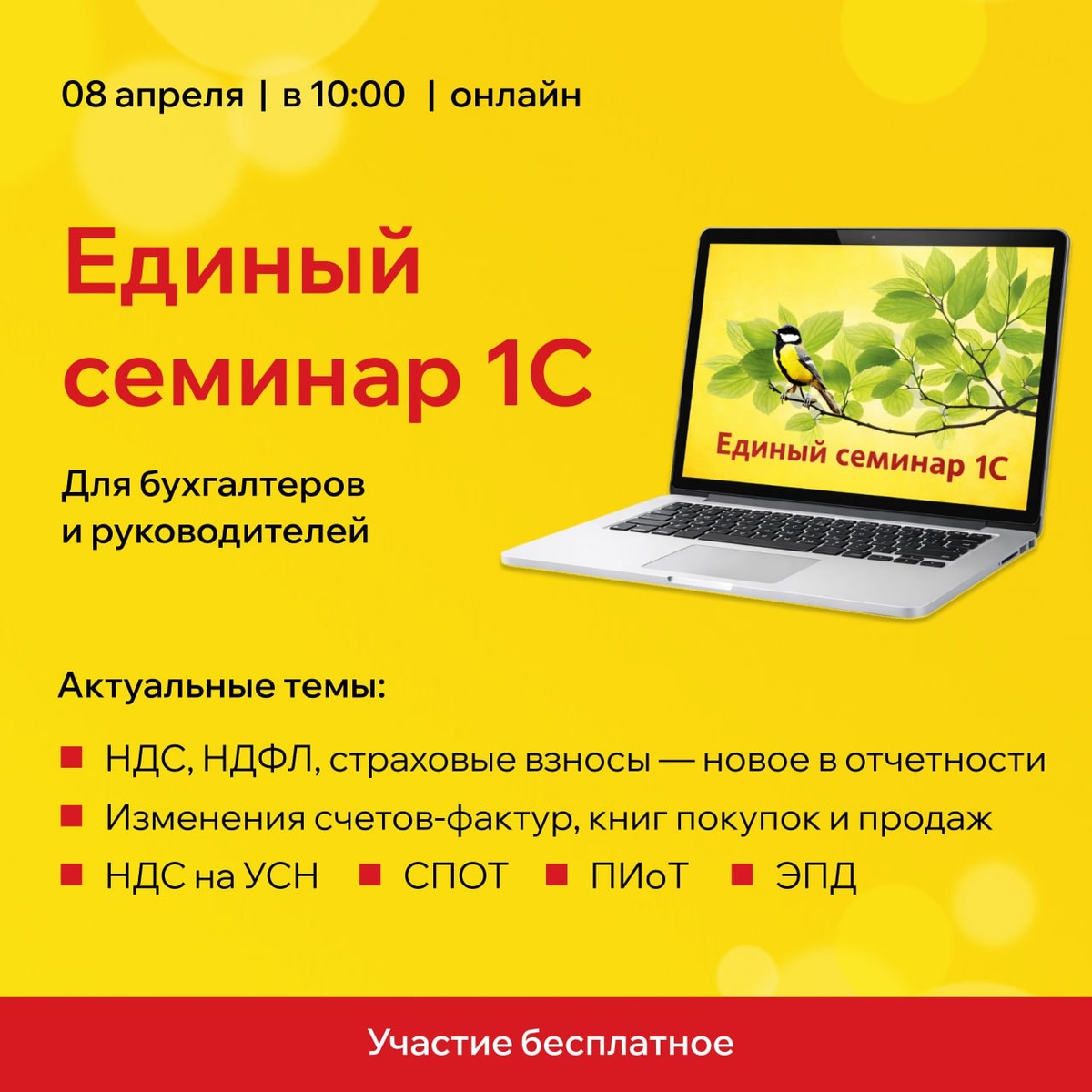 ! Компания «Софт-Юнити» приглашает вас на Единый семинар 1С! Практическое мероприятие, посвящённое важнейшим изменениям в законодательстве и их отражению в программах 1С. Всё, что необходимо знать бухгалтерам и предпринимателям 📅 08 апреля | ⏰ 10:00 (мск) | 💻 Онлайн ✏️ Ключевые темы семинара: 🟡 1С-Отчетность за 1 квартал – на что обратить внимание с учетом изменений налогового законодательства по НДС, НДФЛ и страховым взносам 🟡 Как в бухгалтерской отчетности отразить переход на НДС или изменение ставок НДС 🟡 Изменения форм и правил заполнения счетов-фактур и книг покупок и продаж: поддержка в 1С 🟡 НДС на УСН – ответы на часто задаваемые вопросы 🟡 150 новых критериев проверок контрагентов в 1СПАРК Риски для защиты бизнеса 🟡 Как упростить жизнь отделу кадров, бухгалтерии и сотрудникам с помощью мобильных расчетных листков 🟡 Система подтверждения ожидания товаров (СПОТ) – основные принципы, поддержка в 1С 🟡 ПИоТ для разрешительного режима в маркировке – рекомендации