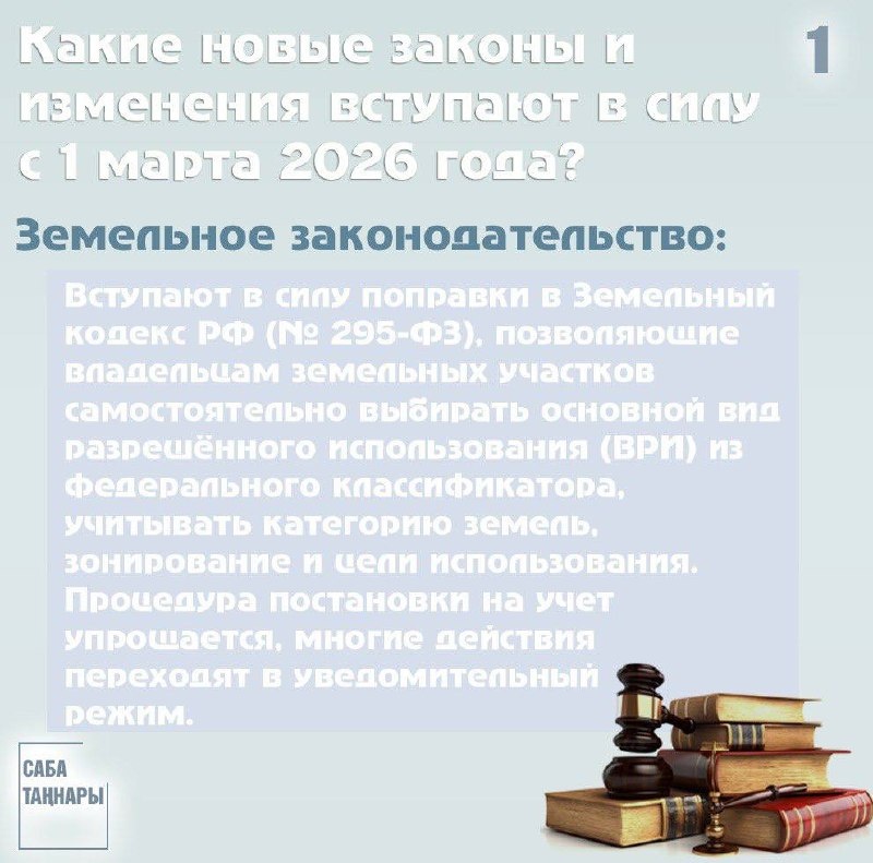Россиядә 2026 елның 1 мартыннан берничә яңа закон үз көченә керә. Тулырак 🔼