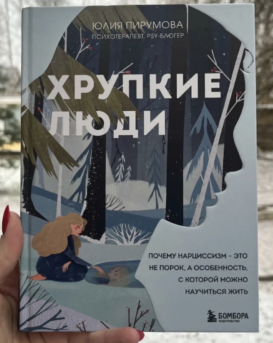 Раньше таких людей называли просто: «эгоист», «самовлюблённый тип», «непробиваемый». Сейчас у этого есть имя — нарциссизм. И книга, которая лежит передо мной, называется «Хрупкие люди». Автор — Юлия Пирумова, психотерапевт и известный блогер.