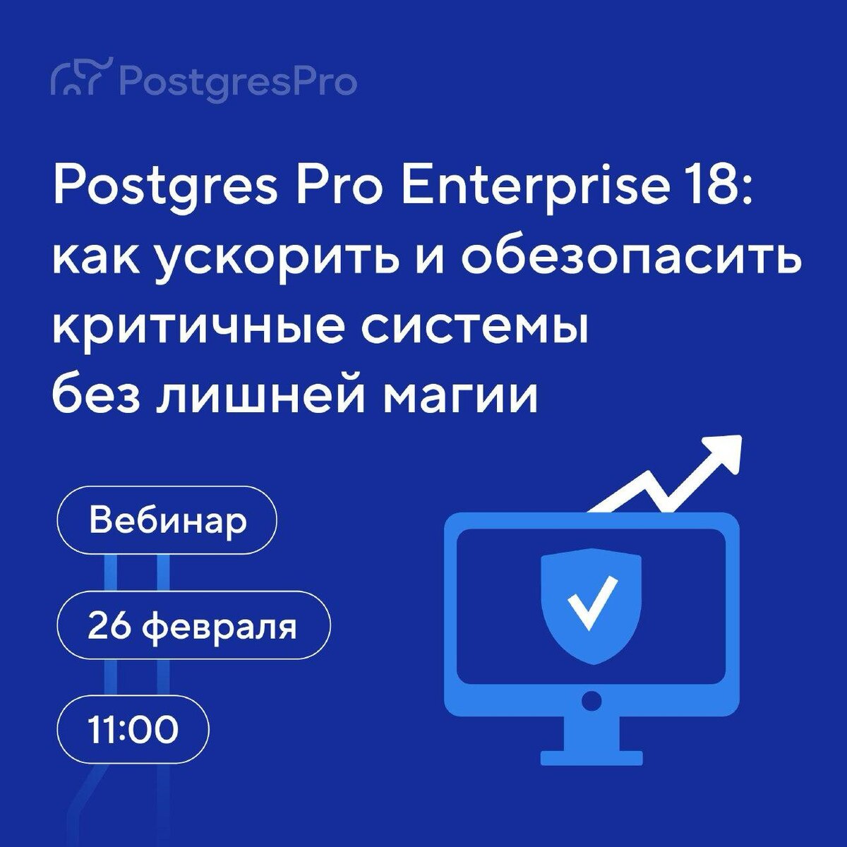 Приходите завтра, 26 февраля, в 11:00 на бесплатный вебинар «Postgres Pro Enterprise 18: как ускорить и обезопасить критичные системы без