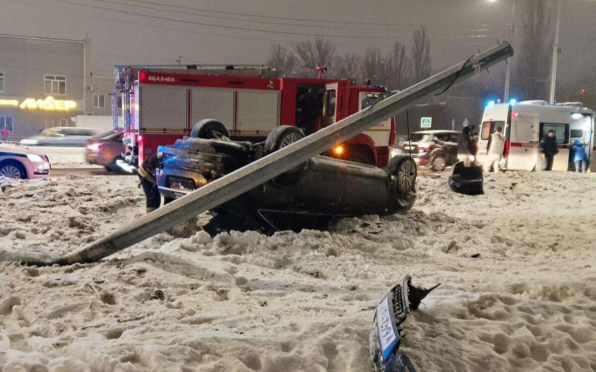 Audi A6 снесла столб и перевернулась на крышу на Острогожской в Воронеже