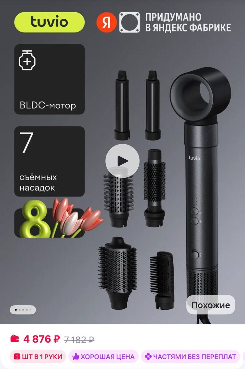 😀😀😀😀Tuvio Фен-стайлер с ионизацией HBI1411, 7 насадок, тёмный металлик