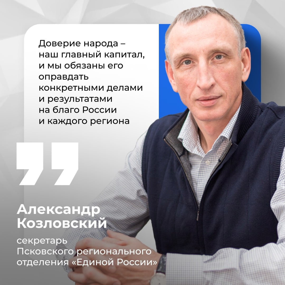 Депутат Госдумы, секретарь регионального отделения «Единой России» Александр Козловский призвал жителей Псковской области участвовать в