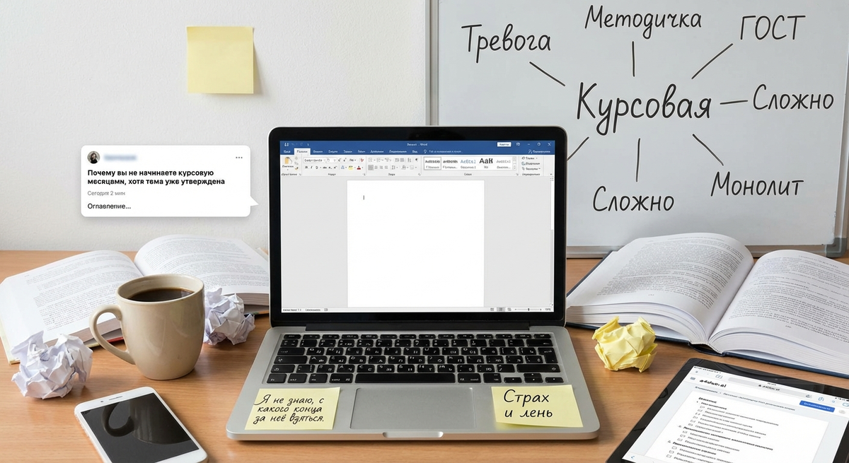 Самый честный ответ на вопрос «почему я не начинаю курсовую» звучит не как «нет времени», а как «я не знаю, с какого конца за неё взяться».