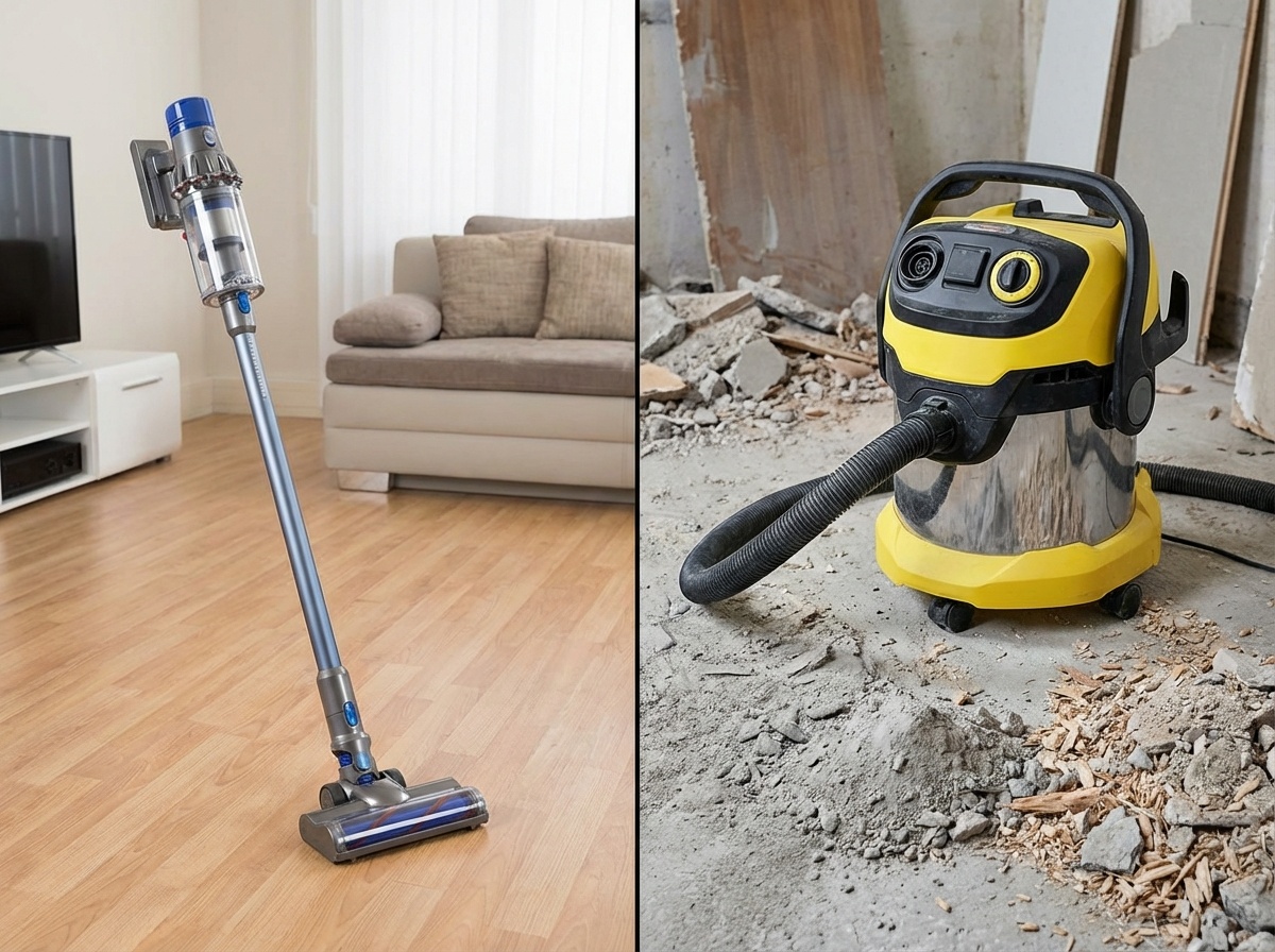 Ремонт в разгаре, и вот вы смотрите на гору бетонной крошки, а рядом — ваш верный домашний пылесос. Возникает соблазн его использовать. Кажется, что разница между приборами только в цвете и размере. Но попытка убрать строительный мусор бытовым пылесосом — это как ехать на гоночном болиде по бездорожью. Можно, но недолго и с последствиями.