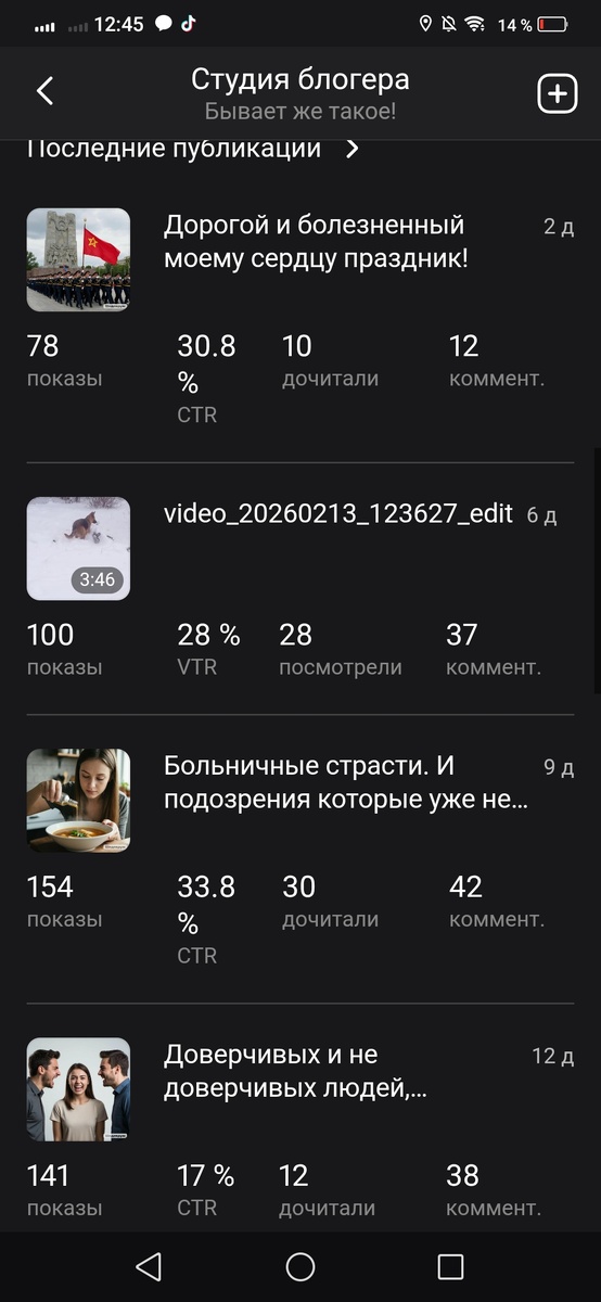 Статья ,,Дорогой и болезненный моему сердцу праздник !" 10 дочитали. При этом 12 комментариев. И 18 отметок нравится. При этом в большинстве отметки нравится от людей, которые приходят ко мне из интереса. Соответственно не читая отмечаться, у них нет совершенно ни