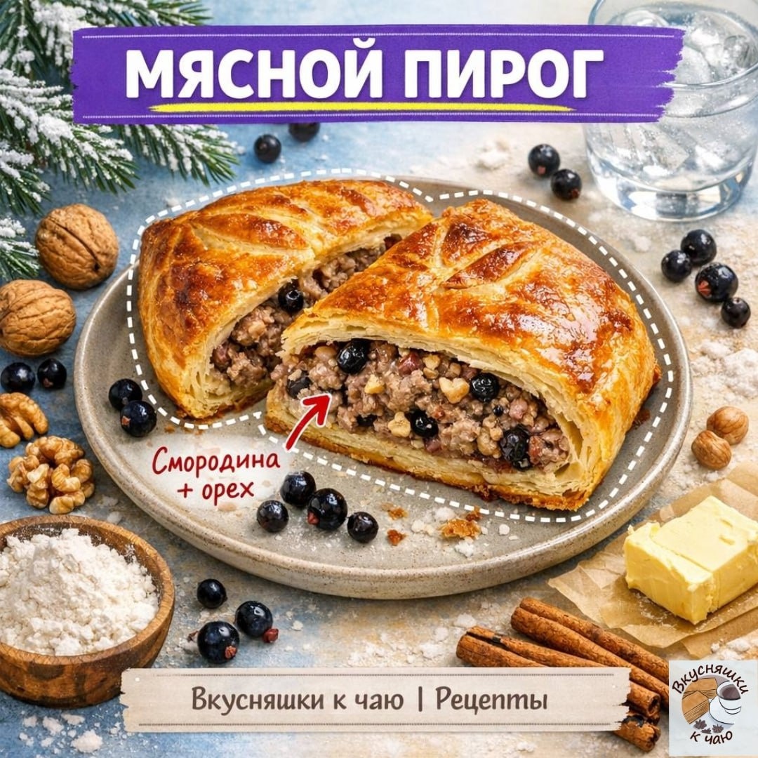 ! Знаете то чувство, когда отламываешь кусочек свежей выпечки, а она буквально тает во рту, рассыпаясь на тонкие слои? Этот рецепт именно про такие эмоции 😍 Готовим Мясной пирог из быстрого слоеного теста — никаких многочасовых ожиданий и сложных техник. Тесто получается очень мягким и слоистым благодаря хитрости с надрезами и маслом. А начинка — это настоящий кулинарный восторг! Сочный фарш обжарен с луком и дополнен... орехами и сушеной смородиной ✨ Не пугайтесь, это невероятно вкусно! Ягоды дают легкую кислинку, а орехи — приятную текстуру. Идеальный ужин для всей семьи или украшение воскресного обеда. Обязательно сохраняйте рецепт в избранное, чтобы не потерять ❤️ #выпечка #пирог #домашняявыпечка #рецепты #еда #вкусно #готовимдома #мяснойпирог #слоеное_тесто #простыерецепты #ужин #еданадом #кулинария #пирогсфаршем #выходные #готовка #рецептдня #семейныйужин #выпечкадома #вкусныйвечер #блогерскаякухня #фудблог #мойрецепт