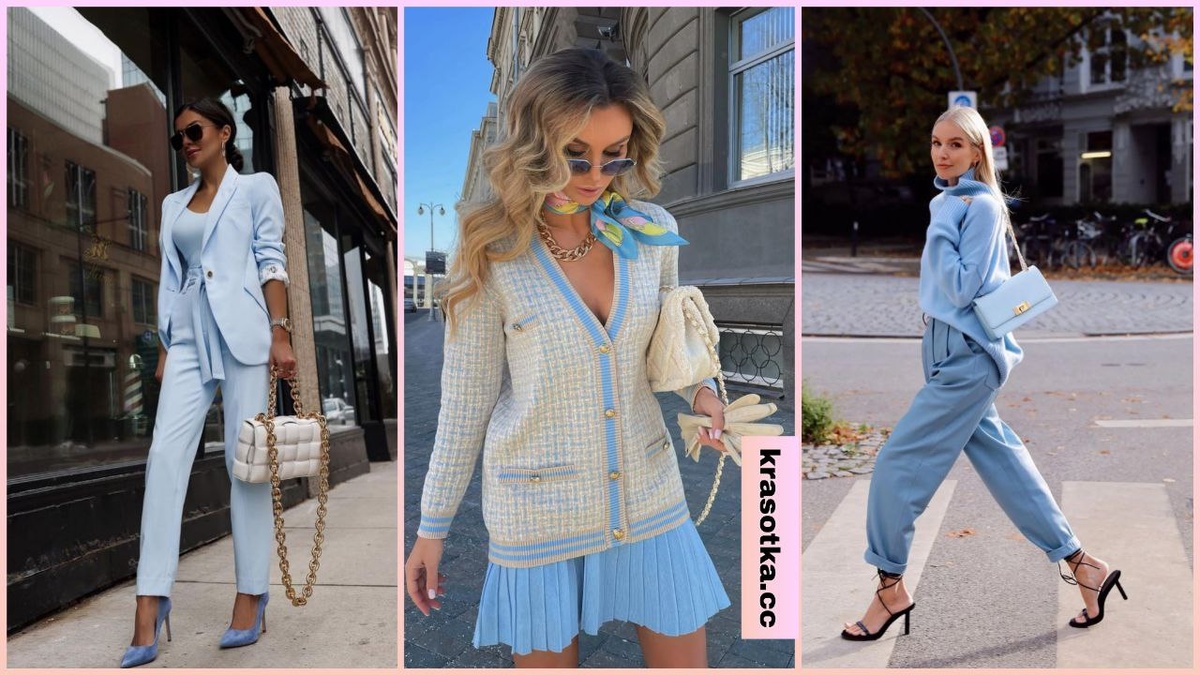 Весной на первый план выходят яркие и пастельные цвета. С их помощью женщины обновляют свои образы , чтобы соответствовать весеннему настроению. Среди всех оттенков особенно выделяется нежно-голубой, который стал главным трендом этого сезона. Его легко сочетать с другими цветами, и он подходит всем, кто хочет выглядеть элегантно и стильно. Небесно-голубой цвет дарит легкость, бесконечную нежность, даже если вы решили выбрать строгий брючный костюм в этом оттенке. Если дресс-код позволяет, то такой комплект можно носить на работу, добавив к образу монохромную майку или блузку и туфли на каблуке. Читайте также: 15 модных примеров с чем лучше всего сочетать голубые брюки в [year] году Стилисты советуют дамам добавить в свой весенний гардероб однотонную юбку в небесно-голубом цвете. Она должна быть простого фасона и из легкой ткани. С этим изделием получаются модные образы для праздника, свидания и офиса. Уйдите от стандартов и классики, выбирайте на весну модное и освежающее пальто в небе