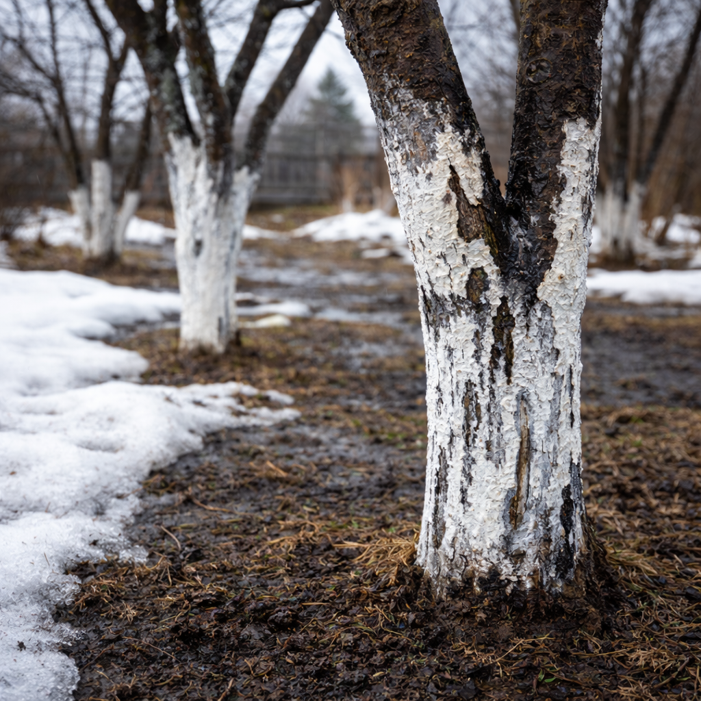 Каждую весну в садах появляется одна и та же картина — белые стволы деревьев на фоне ещё холодной земли. Побелка давно стала символом заботы о саде. Но бывает так: всё сделали вовремя, аккуратно, а кора всё равно получила ожоги или появились морозобоины. И тогда возникает вопрос — а не была ли побелка слишком ранней? Разберёмся, почему ранняя побелка не всегда работает так, как мы ожидаем. Важно понимать: побелка нужна не «для красоты». Её задача: • отражать солнечные лучи