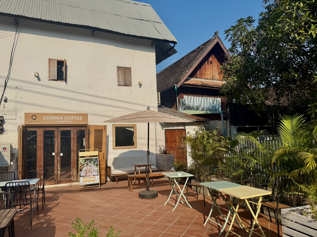Откровенно говоря, эта статья должна была быть посвящена нашей поездке на знаменитый водопад Куанг Си, но... Не сложилось. Не знаю, что с нами приключилось: то ли переутомление, то ли тепловой удар, то ли все вместе и сразу, но утром мы не смогли нормально встать. Думали, позавтракаем и поедем, но нет - нас просто вырубило, и в номере мы провалялись до 15:00. Выползли на обед, попили кофе, сходили на массаж и - всё. Абсолютно пустой день получился, хотя массаж определенно внес позитивных эмоций) Сейчас покажу вам кофейню, которая мне очень понравилась, а затем перейдем к рубрике "Пароли-Явки". Невзрачная снаружи, но современная внутри, эта кофейня понравится своей минималистичностью. Варят кофе здесь из местных сортов зёрен, хотя владельцы - китайцы :) Внутри небольшой сувенирный магазинчик, можно также купить с собой кофе или шоколад ручной работы. Плитка 80 гр за 90 000 кип (360р): и до Лаоса добралась шринкляция)) На кассе заказываем два капучино (чашка 50 000 кип или 200 рублей).