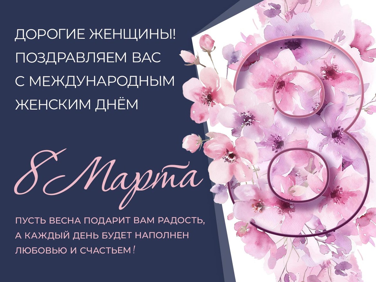 В этот весенний день примите искренние поздравления с Международным женским днём 8 марта! Этот праздник по праву считается одним из самых светлых, он олицетворяет безграничную любовь и уважение к прекрасной половине человечества, рождающей нежность и трепет в мужских сердцах. Сочетая в себе красоту и мудрость, женщины вносят гармонию во все сферы общественной жизни и профессиональной деятельности. Пусть то, что Вы отдаёте, возвращается к Вам новыми успехами и яркими победами, счастьем в семье, здоровьем и благополучием близких. Желаю Вам любви, улыбок, радости, тепла! Пусть сбудутся все добрые надежды и мечты! ГБУ МО "ЦМУ" желает, чтобы ваши сердца принадлежали тем, кто любит и обожает вас, чтобы каждый день и час вы ощущали любовь и заботу, преданность и верность, помощь и поддержку! С Международным женским днем 8 Марта!