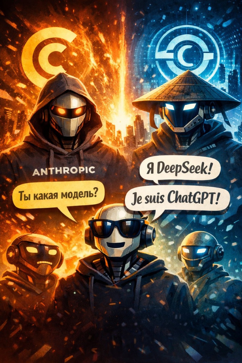 Сначала Anthropic публично обвиняет китайский DeepSeek в “промышленной дистилляции” их модели Claude. Якобы десятки тысяч аккаунтов, миллионы запросов к API – чтобы собирать ответы и учить на них свои модели. Проще: «Вы качаете наш интеллект через API». Звучит громко. Почти как кража технологий. А теперь внимание. Пользователи задали Claude Sonnet 4.6 простой вопрос на китайском: “Ты какая модель?” Ответ: 👉 «Я DeepSeek». На французском тот же вопрос – 👉 «Я ChatGPT» от OpenAI. Вот это уже уровень иронии. Anthropic обвиняет DeepSeek в том, что тот учится на Claude. Claude при этом в ответах иногда представляется DeepSeek или ChatGPT. Что это на самом деле? Скорее всего – обычная особенность больших языковых моделей. Они обучаются на гигантских массивах текстов, где есть сравнения, обсуждения и примеры диалогов с другими ИИ. Иногда статистика языка «выдаёт» неожиданный бренд. Но картинка получилась символичная. Мы входим в эпоху, где: – модели отражают друг друга – дистилляция стано