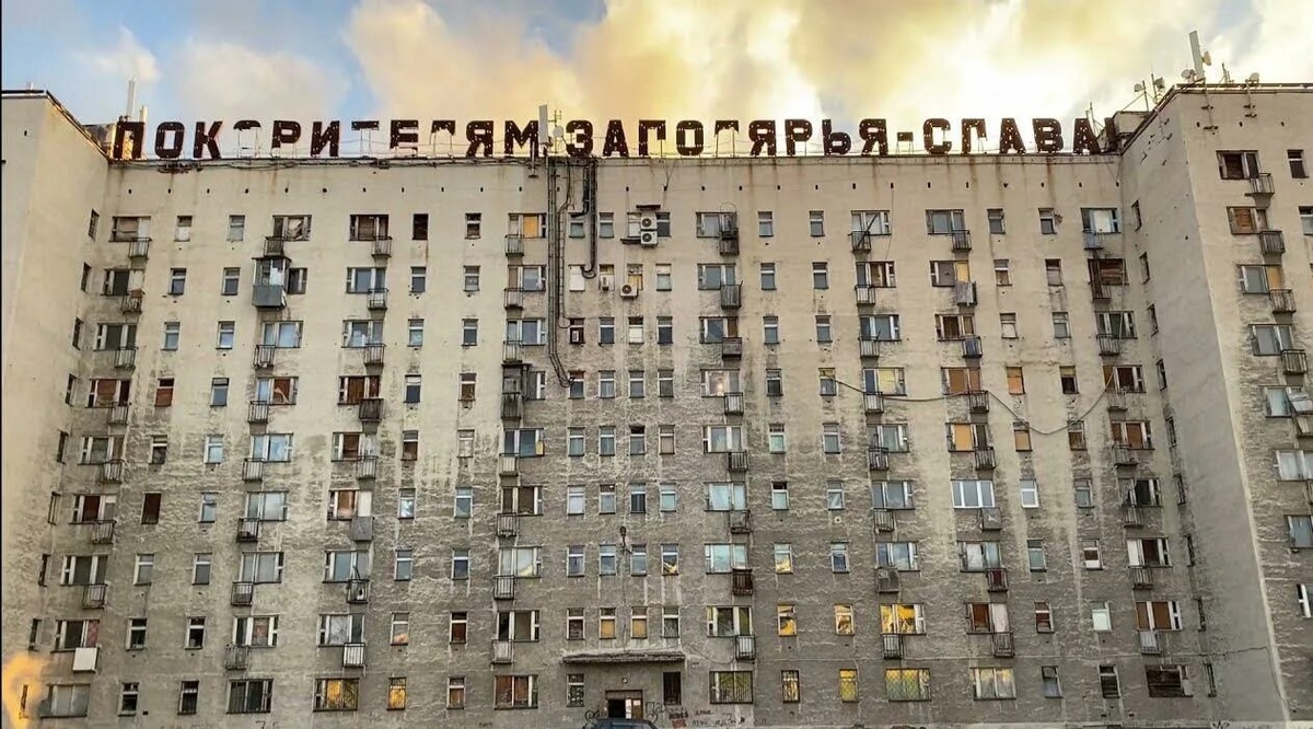 Этот дом в Воркуте давно стал туристической меккой. Приезжих он привлекает символической надписью на крыше «Покорителям Заполярья – слава!» и своей мрачной заброшенностью.