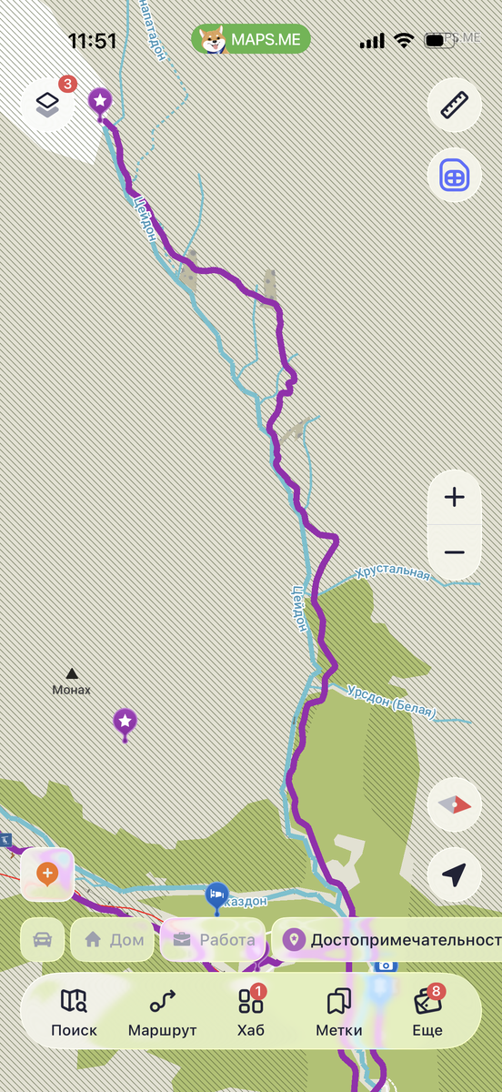 начало маршрута 42.787964, 43.898991 и сам ледник 42.774566, 43.859568