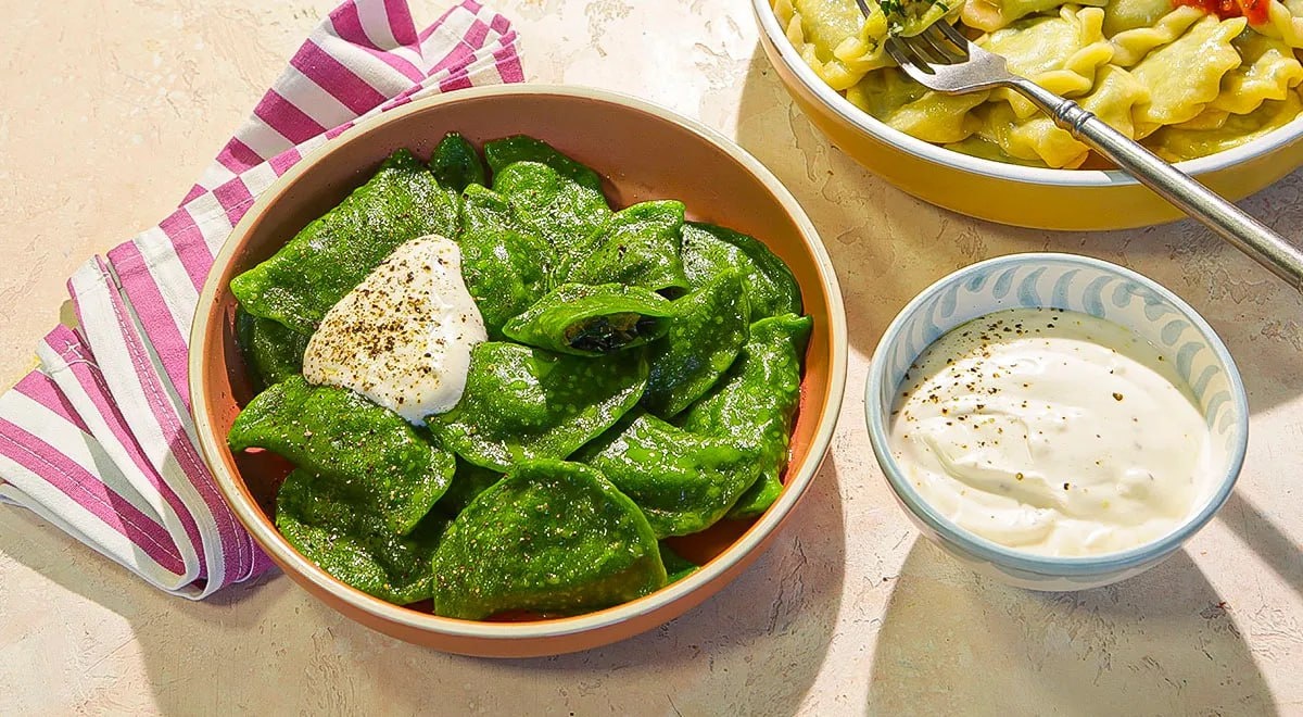 🥟 Собрали для вас лучшую подборку постных вареников — от классики до оригинальных сочетаний. Тесто без яиц и молока получается эластичным, а начинки вдохновляют! Универсальное постное тесто (на 30-35 шт.): - Мука — 320 г - Кипяток — 150 мл - Масло растительное — 50 мл - Соль — 1 ч. л. Как готовить: Смешайте муку с солью, влейте масло и кипяток, быстро замесите эластичное тесто. Дайте отдохнуть 10 минут под пленкой. ### 4 идеи для начинки: 1. С картофелем и песто 🥔🌿 - Картофель запеките (700 г), разомните в пюре. - Смешайте в блендере: базилик (40 г), кедровые орехи (15 г), чеснок (2 зуб.), оливковое масло (50 мл). - Соедините с пюре, посолите, поперчите. 2. С ягодами и лимонным соусом 🍓🍋 - Замороженные ягоды (350 г) нарежьте, смешайте с сахаром (3 ст. л.) и крахмалом (35 г). - Для соуса: лимонный сок и цедра + соевое молоко (60 мл) + сахар (30 г) + крахмал (3 г) уварите до загустения. 3. Со шпинатом и сметанным соусом 🌿 - Тесто: мука (300 г) + сок шпината (из 150 г) + масл