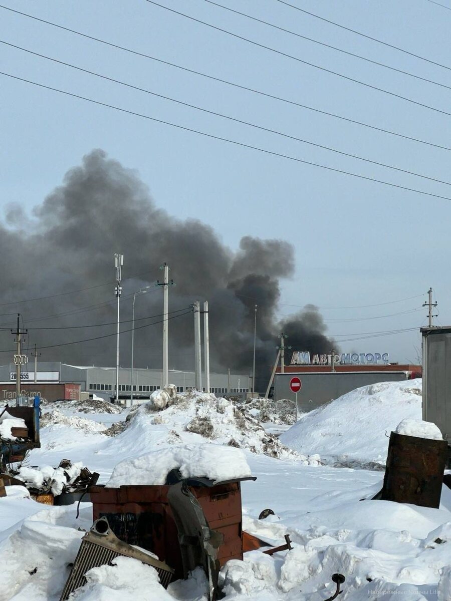 🔥 Сильный пожар прямо сейчас на Мензелинском тракте