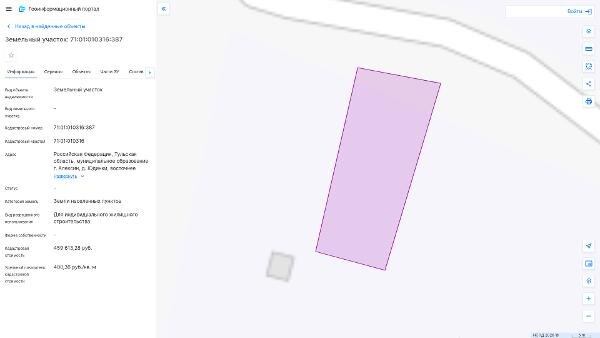 Название: Продажа земельного участка из земель населенных пунктов с кадастровым номером 71:01:010316:387, площадь 1148 кв