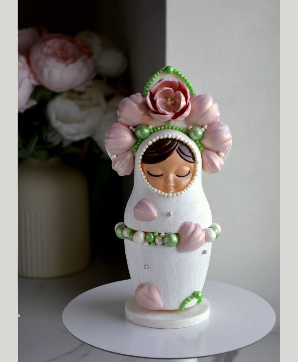 , 🔥если вы захотите придать ей особый характер. 😍В этой прелестной нежной барышне уже почти невозможно узнать саму матрёшку, хоть по ее очертаниям это и очевидно. Это уже как будто совсем другая героиня. Очень нежная. Живая. Трогательная. ☺️С цветами образ стал мягким, женственным, наполненным настроением — и снова мы говорим не о фигурке, не о декоре, 🤫а о какой-то удивительной истории, переданной нам через шоколад.