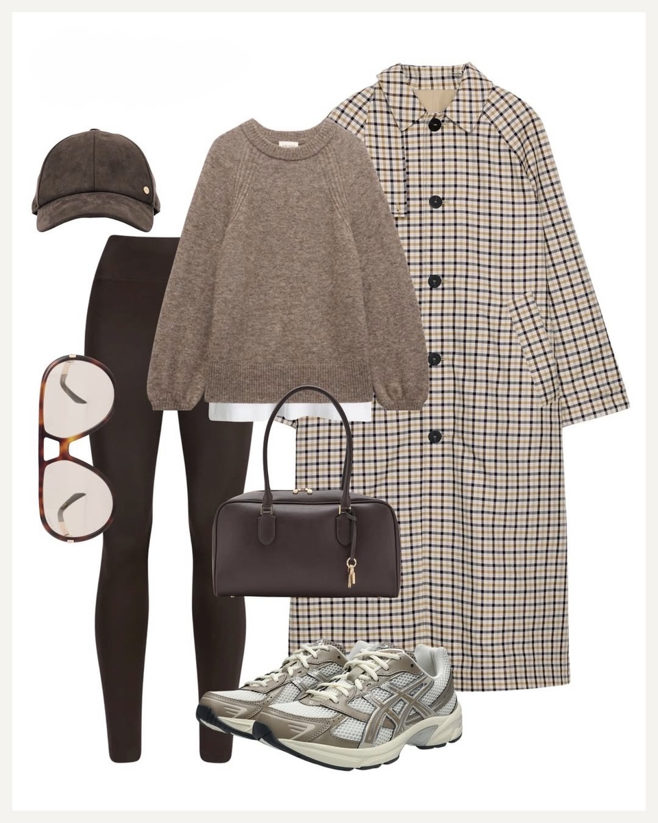 Кепка делает образ современным и «живым». Она снижает градус строгости клетчатого пальто и добавляет уличной лёгкости — как будто вы просто вышли по делам и выглядите стильно без усилий.