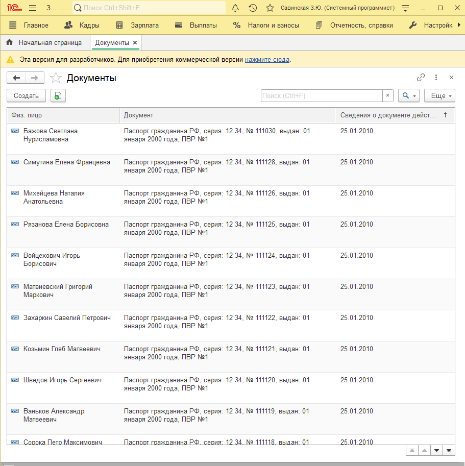 ДанныеФизЛица = КадровыйУчет.ДокументыФизическихЛиц(Организация , Истина); Пожалуйста, поставьте лайк статье!