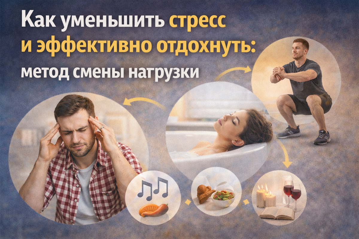 Стресс чаще всего не от того, что «слишком много дел», а от того, что нагрузка одного типа тянется часами без переключения. Мозг перегрелся, тело зажалось, эмоции выжали, а сверху еще бесконечные уведомления. Самая простая логика отдыха – смена деятельности. Не «ничего не делать», а переключить систему на другой режим. Четыре вида перегрузки 1. Интеллектуальная – когда много думаешь, решаешь, учишься, считаешь, сравниваешь. 2. Физическая – когда много двигаешься, носишь, тренируешься, стоишь на ногах. 3. Эмоциональная – когда много переживаешь, общаешься, держишь лицо, конфликтуешь, сочувствуешь. 4. Рецепторная – когда органы чувств перегружены шумом, экраном, запахами, толпой, ярким светом. Ключевой принцип