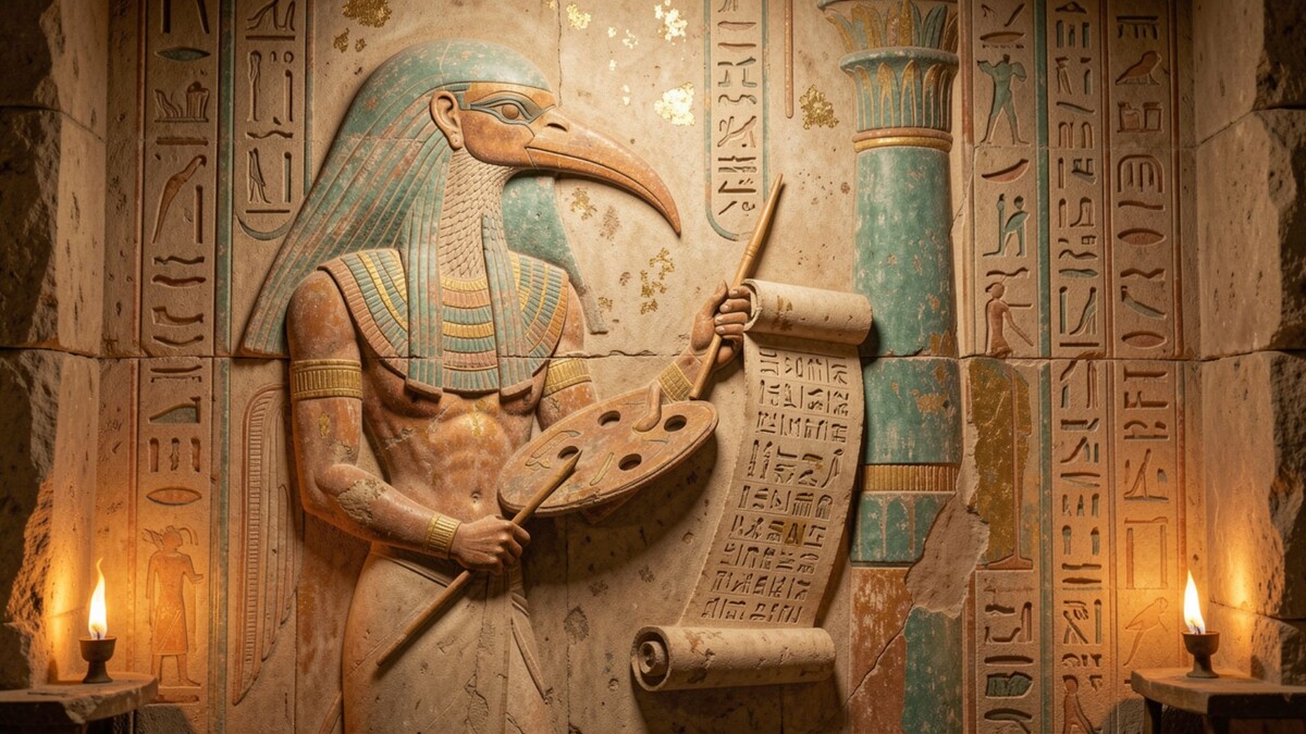 Тот — бог мудрости, письменности, магии, счёта и наук. Именно он создал иероглифы, изобрёл календарь, научил людей считать и записывать знания. Он покровитель писцов, библиотек и всех, кто стремится к познанию. В загробном суде Тот записывает результаты взвешивания сердца умершего, определяя его судьбу .