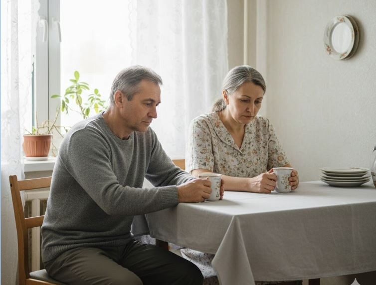 Холодное утро. Ольга поставила на стол тарелку с кашей и чай, как ставила двадцать пять лет подряд. За окном торчали голые деревья, а в колее под окнами лежал почерневший, сыпучий снег — ни белизны, ни свежести. В квартире тоже было мёртво: ни музыки, ни лишних слов. Игорь ел молча, глядя в телефон. Даже не поднял глаза, когда она села напротив.