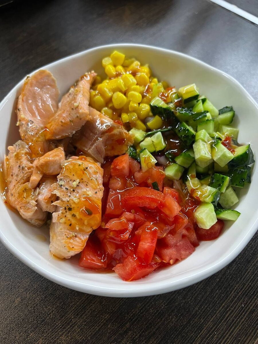 Это классный и полезный ужин для любителей суши и роллов. Для полного антуража не хватает только листов нори, но их легко можно добавить. Ингредиенты: • рис — варим в пропорции 1:2 • рыба / креветки / крабовые палочки — любые морепродукты по вкусу • курица или индейка — если не любите морепродукты • кукуруза • огурец • помидор • соевый соус — по вкусу • соус сладкий чили — по вкусу • листы нори — по желанию Как готовить: • Рис отвариваем в пропорции 1:2 до готовности. • Подготавливаем белок: нарезаем рыбу, креветки или другой выбранный вариант. • Овощи нарезаем небольшими кусочками. • В готовый рис добавляем немного соевого соуса и перемешиваем. • В тарелку выкладываем рис, сверху распределяем белок и овощи. • Поливаем соусом сладкий чили. • При желании добавляем нарезанные листы нори. Блюдо получается вкусным, быстрым и сытным — отличный вариант, когда хочется чего-то необычного без долгой готовки. Приятного аппетита ❤️ 🥗🥗🥗 Знаете, как легко и вкусно приготовить рыбу, чтобы не тр