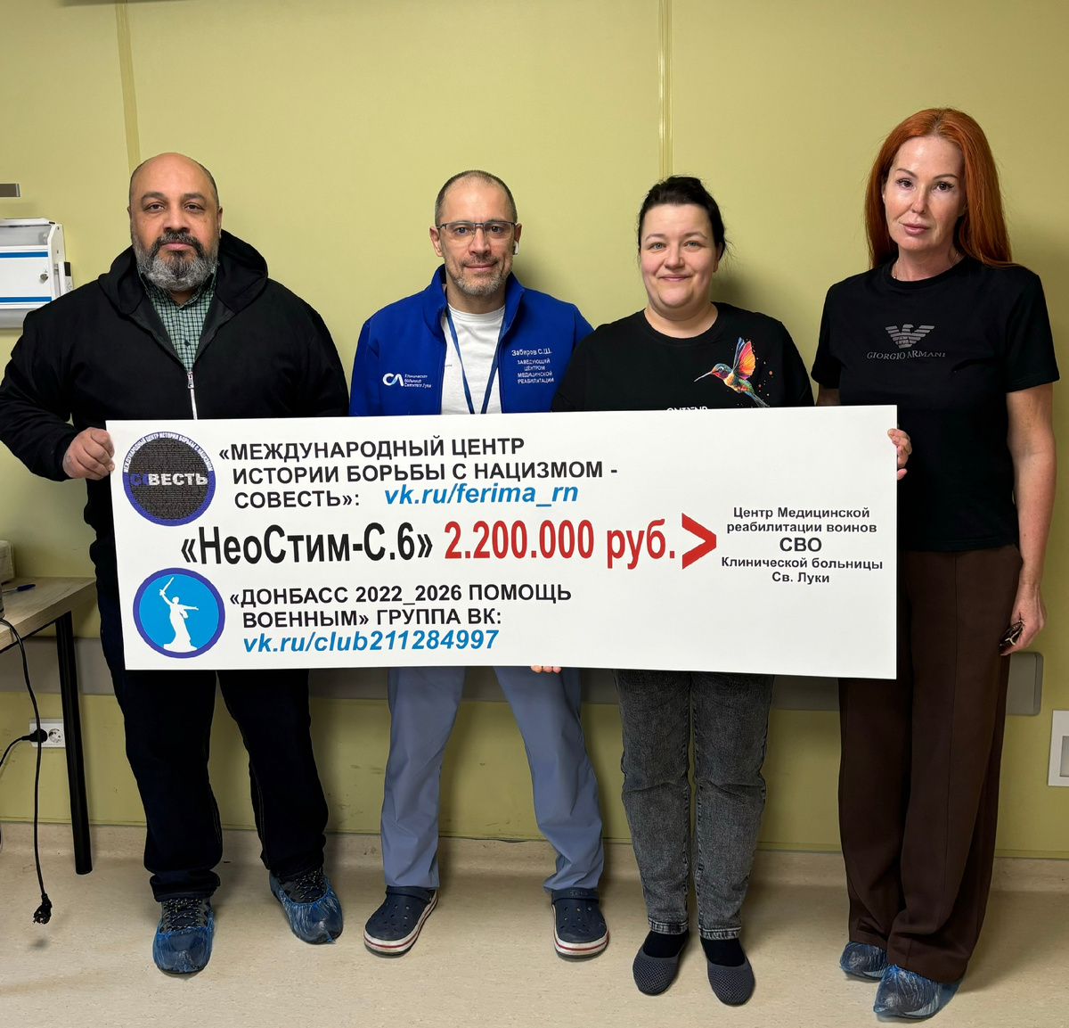 Пять месяцев назад по инициативе Шумихиной Татьяны и Олеси Шатуновой vk.ru/club211284997 а так же Международного Центра Истории Борьбы с Нацизмом – Совесть vk.ru/ferima_rn в лице Руслана Феримы – Магарыч / было принято решение: объединить усилия для сбора средств на покупку дорогостоящего медицинского аппарата «НеоСтим – С 6». Оборудование необходимо для сложного лечения воинов — участников СВО в Центре медицинской реабилитации клинической больницы св. Луки (руководитель — Забиров Сергей Шамилевич). Больница расположена по адресу: г. Санкт-Петербург, ул. Чугунная, д. 46, лит. Ж.