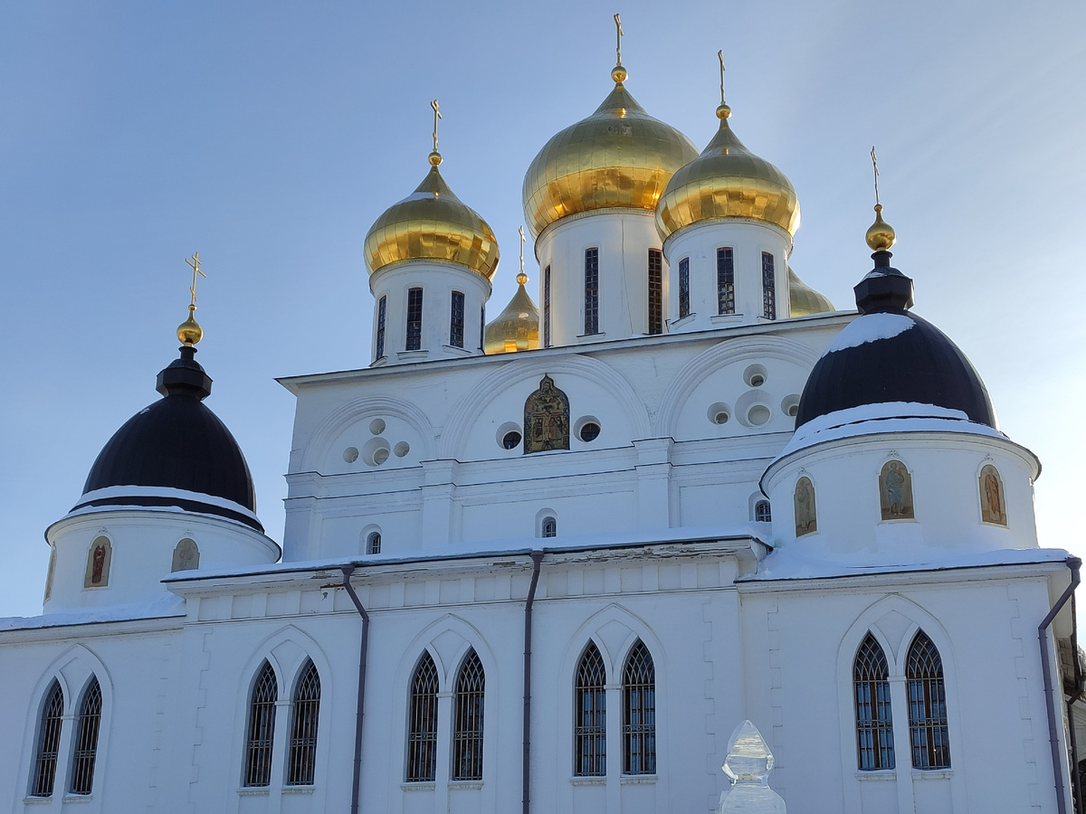 Наверное, стоило приехать сюда именно в такой день, когда золотые купола собора сияют под солнцем, а его белоснежные стены могут посоперничать своей чистотой с окружающим его снегом. Древний город, древний кремль, древний храм... Живая история, к которой можно прикоснуться...