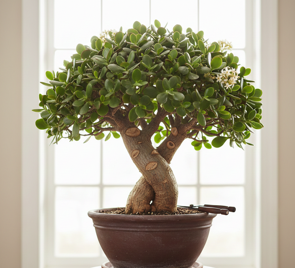 3. Формирование. Для формирования деревца, если вы хотите, чтобы ваше Денежное дерево росло одним стволом, удаляйте все боковые побеги, которые появляются на стволе снизу. Когда ствол достигнет желаемой высоты (обычно 15-20 см), прищипните верхушку (то есть удалите самую верхнюю пару листьев и точку роста). Это стимулирует развитие боковых веток и формирование кроны.