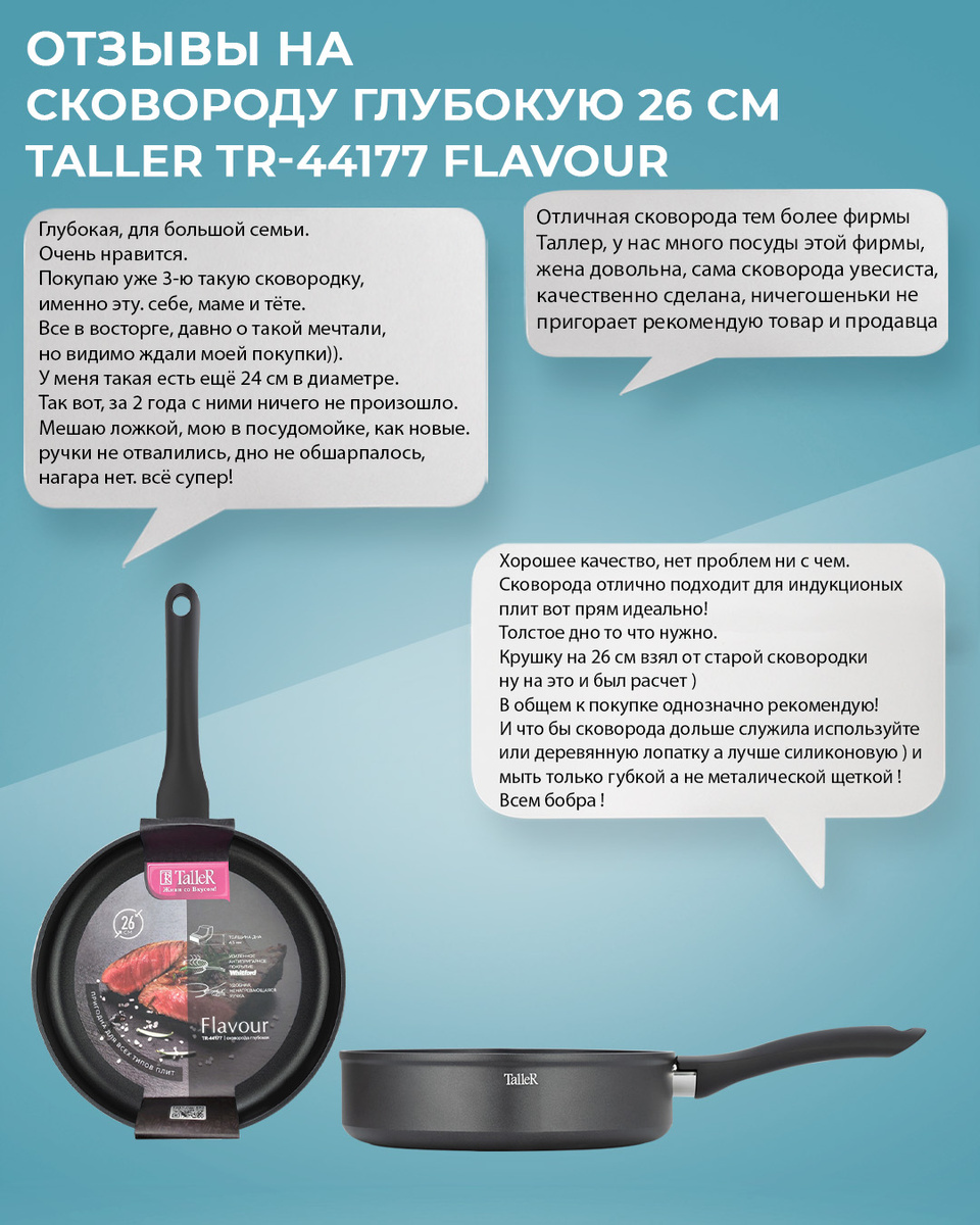 Набор столовых приборов TalleR TR-21622 16 предметов – https://clck.ru/3S4PUX КружкаTalleR TR-31378 Эшли250 мл – https://clck.ru/3S4PZB Терка TalleR TR-21926 Люси – https://clck.ru/3S4PGq Доска разделочная 40*20,5 см TalleR TR-52225 – https://clck.ru/3S4PjZ Сковорода глубокая 26 см TalleR TR-44177 Flavour - https://clck.ru/3S4Pp7 Если вы еще не успели поделиться впечатлениями - самое время! Нам важно знать, что вас вдохновляет, а что, возможно, стоит улучшить. Ваш опыт - это лучшее, что ведет нас к совершенству. Спасибо, что вы с нами! #Отзывы #TalleR #посудаTalleR #сковорода #кастрюля