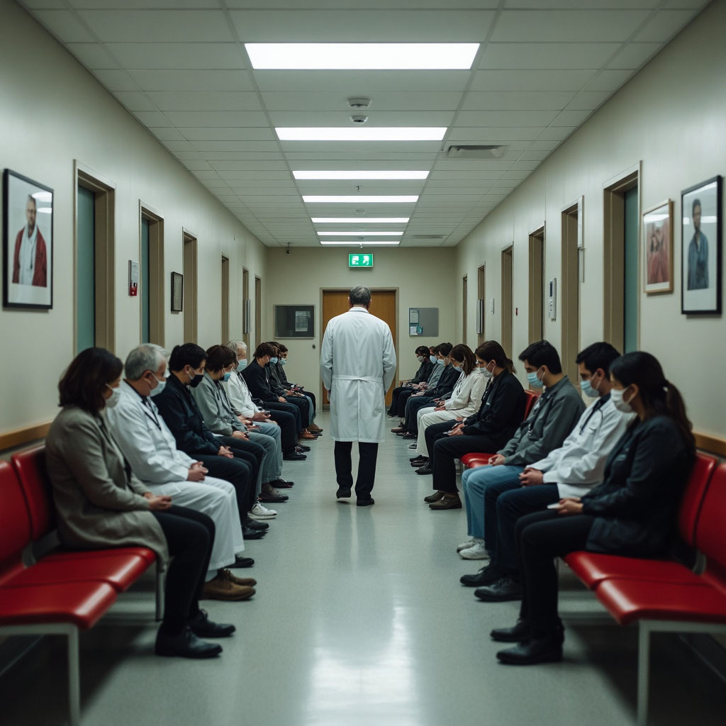 Доктор удивился. Жена перестала плакать. А дедок уже вышел обратно в коридор и сел на свое место, как ни в чем не бывало.