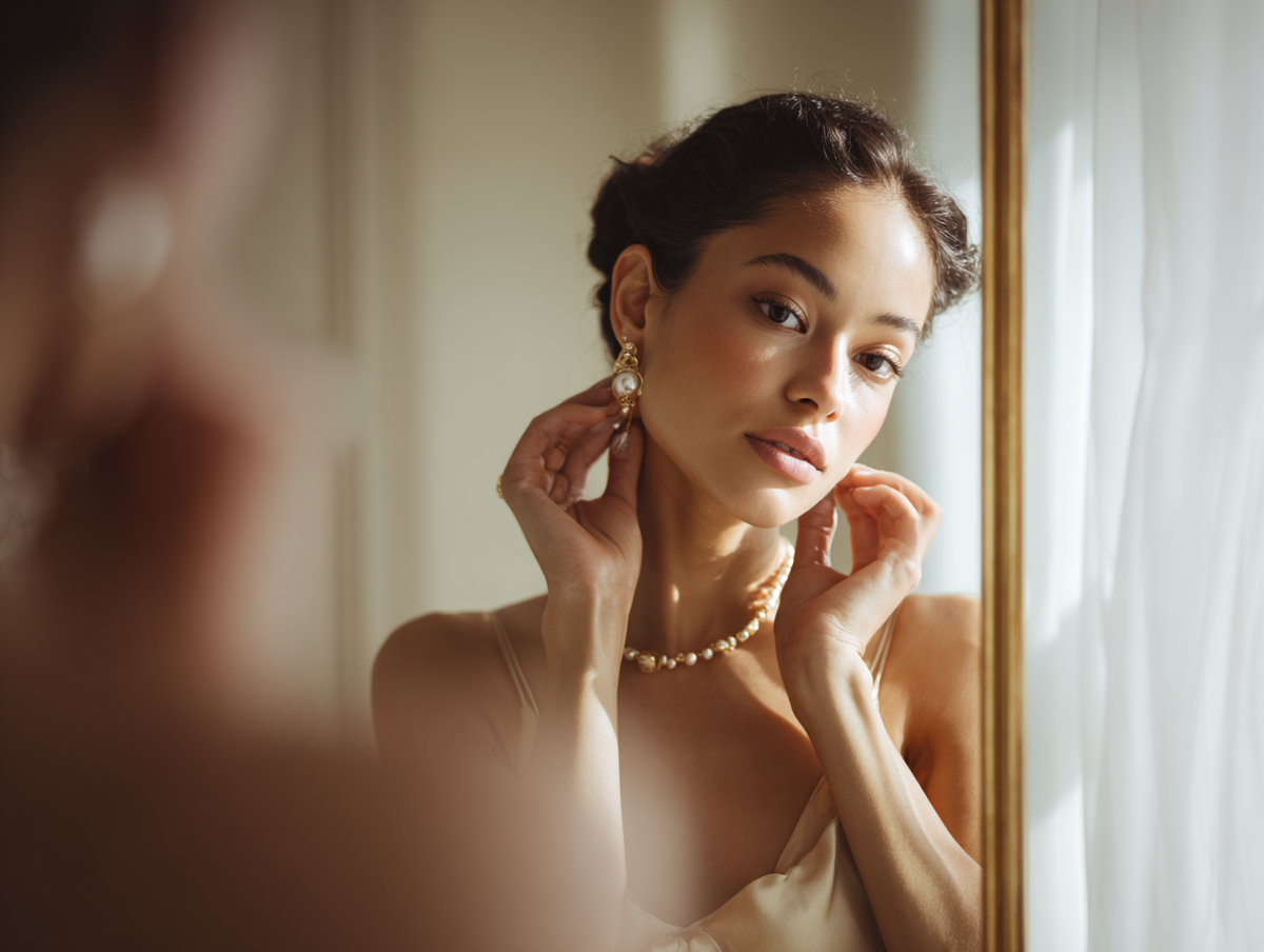или почему иногда «чуть меньше» — значит «намного лучше Есть особый тип трагедии, который разворачивается не в театре, а перед зеркалом. Женщина надевает серьги — красиво. Добавляет колье — уже эффектно. Потом браслет, потом ещё один, потом кольцо, потом второе, потом «ну раз уж надела» часы. И вдруг в отражении появляется ощущение не образа, а витрины. Не женщины, а экспозиции. Аксессуары — это не количество. Это акцент. Это пауза в речи. Это правильно поставленная точка. И когда точек слишком много, предложение перестаёт быть читаемым. Давайте спокойно, без нравоучений и паники разберём пять самых частых ошибок, которые портят даже самый хороший гардероб. Желание использовать «всё лучшее» в одном выходе понятно. Украшения куплены, они нравятся, они ждут своего часа. Но проблема в том, что аксессуары, в отличие от друзей, плохо уживаются большой компанией. Если у вас крупные серьги с характером, сложное многослойное колье и браслеты, которые слышны из соседней комнаты, — в образе начи