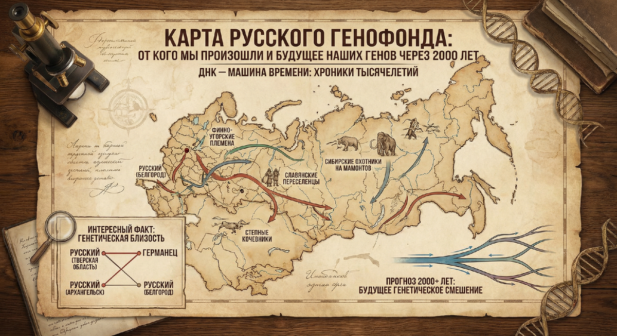 Вы когда-нибудь задумывались, что ваша ДНК — это настоящая машина времени? В ней записана история тысячелетий: от сибирских охотников на мамонтов до славянских переселенцев, от финно-угорских племен до степных кочевников. Весь исторический путь , все его основные этапы и взаимодействия с окружающим миром и другими племенами записаны в генетическую летопись истории людей. Сегодня мы разберем эту летопись по косточкам.