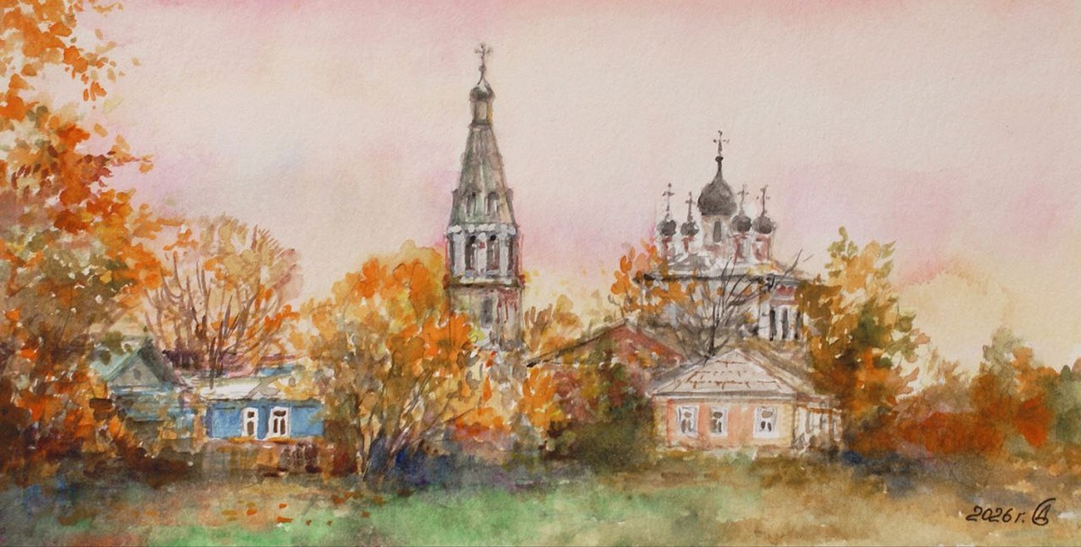 Осенняя глубинка - бумага/акварель, 11х22, 2026