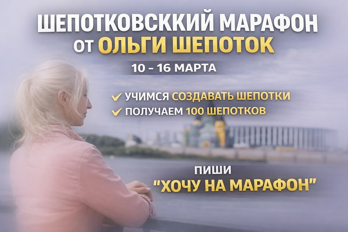 Последние денёчки когда МАРАФОН «Леди Шепоток» Ранняя весна идёт за 1000 рублей. На марафоне будем учиться создавать шепотки, будем пробуждать шепотковскую память! 10–16 марта За 7 дней вы получаете: ✔️ 100 шепотков и практики для ежедневного применения В копилку знаний: • алгоритмы создания шепотков • навык пробуждения шепотковской памяти • активация шепотковских потоков Пробуждайте шепотковскую память — присоединяйтесь за донат: до 1 марта 1000 ₽, с 1 марта 1500 ₽ 💬 Для записи на марафон напишите мне ХОЧУ НА МАРАФОН в мой личный Telegram: https://t.me/OlgaShepotok 🗝 Шепотковское мероприятие проходит в закрытой группе Telegram-канала. 🔥 🥳 👋 🫶 👍 🌷 ✍️