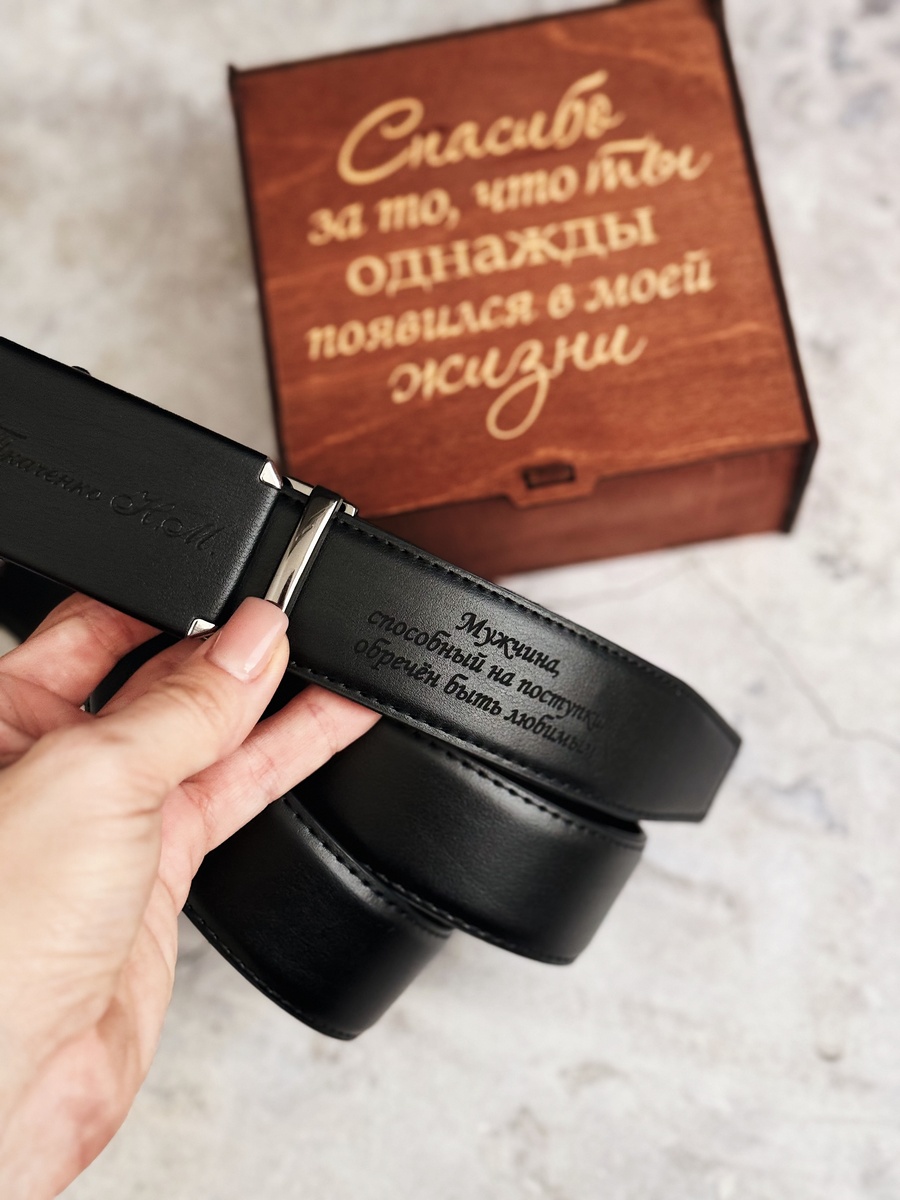 Ремень мужской кожаный с вашей гравировкой на пряжке и ремне🔥