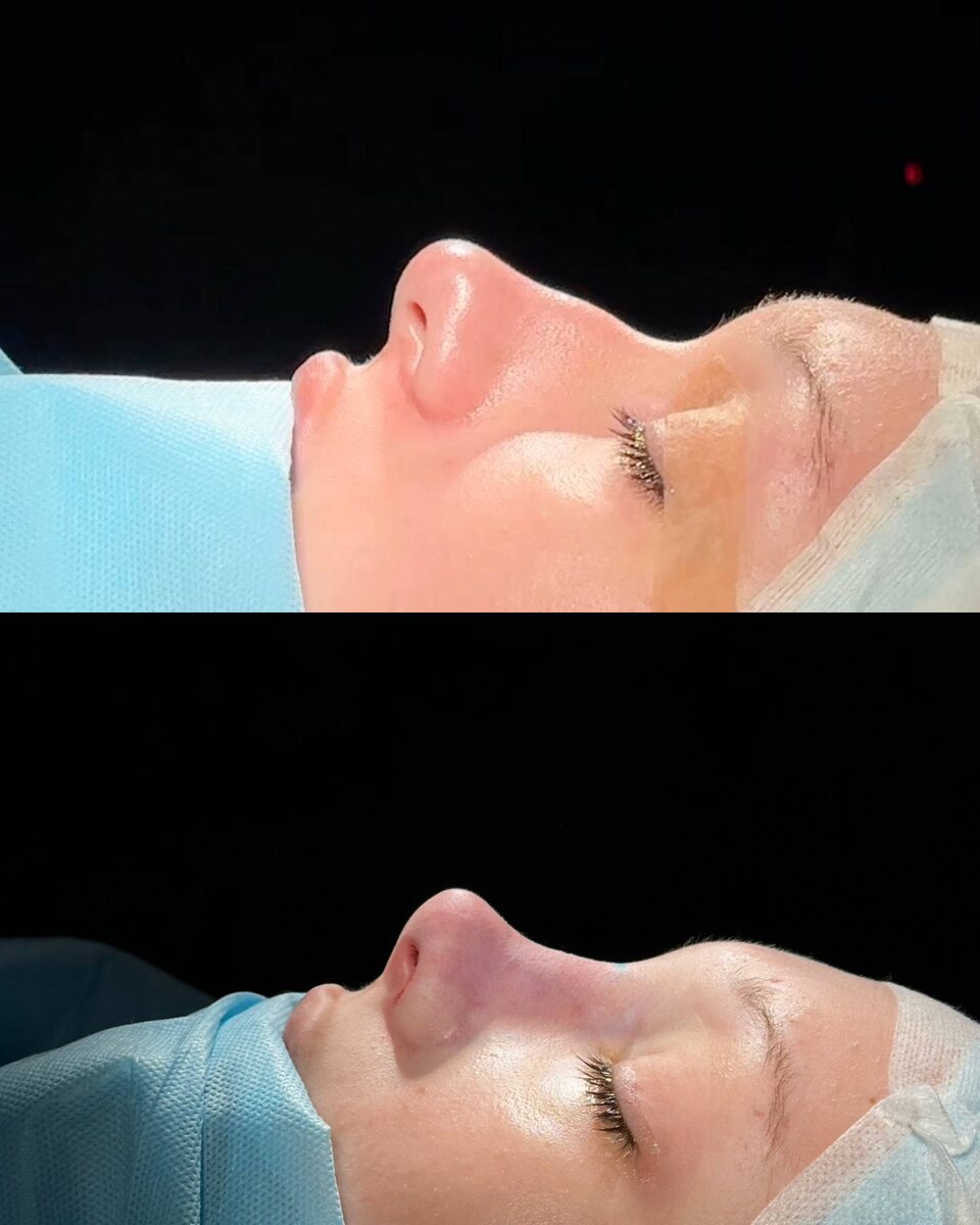 Был запрос: убрать горбинку, сделать нос чуть короче и добавить тот самый женственный прогиб на спинке. Всё выполнили аккуратно, бережно, с сохранением индивидуальности. На фото результат сразу после операции: нос выглядит изящнее, а лицо уже угадывается иначе. Ринопластика — это всегда ювелирная работа. Здесь важно было не просто убрать лишнее, а создать красивую линию: плавный прогиб, аккуратный кончик, естественный профиль. Чтобы со временем, когда спадёт отёчность, нос смотрелся так, будто был таким всегда. Мы постарались, и результат уже виден. Сейчас пациентка отдыхает после наркоза, а мы ждём первых фото через месяц, когда нос начнёт показывать свой настоящий характер. Главное, что первый этап позади, и он прошёл именно так, как задумывали. Аккуратно, красиво и очень бережно 🤍