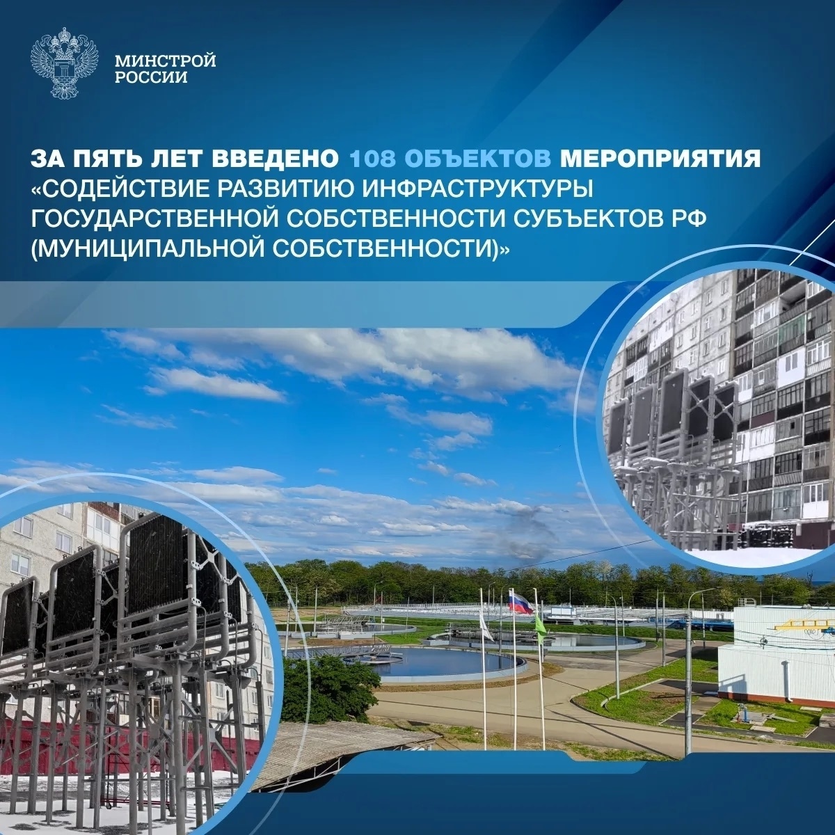 ✏️ Водоснабжение и канализация: С 2020 по 2025 годы в рамках мероприятия «Содействие развитию инфраструктуры государственной собственности субъектов Российской Федерации (муниципальной собственности)» осуществлялось строительство и реконструкция 142 объектов капитального строительства на территории 36 регионов. «Большая часть объектов мероприятия направлена на модернизацию коммунальной инфраструктуры, строительство и реконструкцию очистных сооружений, обеспечение качественным и бесперебойным водоснабжением и водоотведением, строительство и реконструкцию сетей ливневой канализации, благоустройство общественных пространств. За пять лет введено в эксплуатацию 108 объектов. По итогам 2025 года получены разрешения на ввод 10 объектов. Из них шесть объектов ЖКХ, два - берегоукрепления, дом и парк», – заместитель Министра строительства и ЖКХ РФ Юрий Гордеев. Так, в прошлом году построен внутрипоселковый водопровод в Алхан-Юртовском сельском поселении Чеченской Республики, проведена реконст