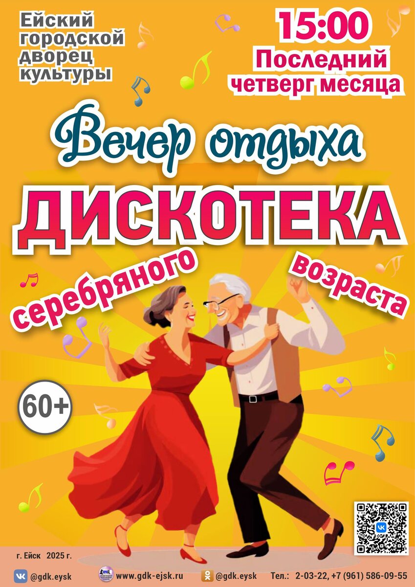 » Это идеальный повод выйти из дома, встретиться с друзьями, потанцевать от души и почувствовать настоящий праздник! Телефон для справок: +7 (961) 586-09-55 — Оксана Геннадьевна, художественный руководитель Ейского городского дворца культуры. Подписывайтесь: @gdk_ejsk