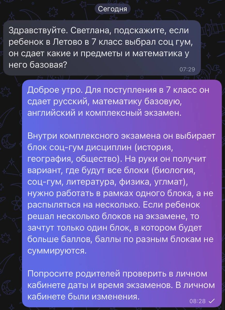 Сегодня коллега уточняла про экзамены при поступлении в 7 класс школы «Летово