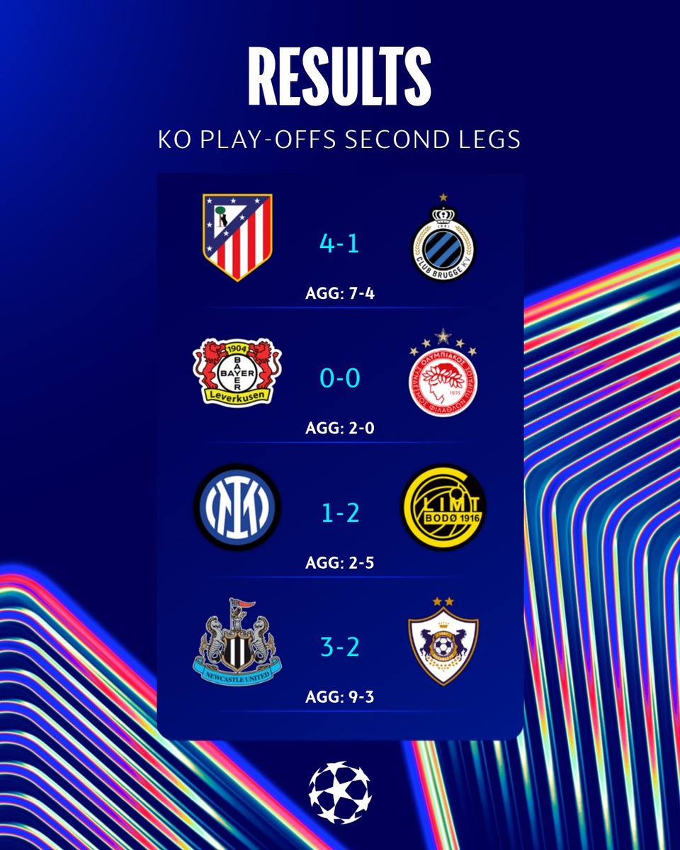 Александр Серлот сделал ответный матч для команды Симеоне. Первый хет-трик норвежца в Лиге чемпионов выводит «матрасников» в 1/8 финала. Во втором тайме гости рассыпались и не создали ни одного голевого момента. «Байер» в эконом-режиме провел весь матч, сохранив задел после первого матча. Подопечные Мендилмбара так и не придумали как атаковать ворота немецкого клуба. Первая сенсация этого евросезона! Финалист прошлого розыгрыша вылетает от дебютанта ЛЧ. Норвежский «Буде/Глимт» крайне дисциплинированно провел матч на «Джузеппе Меацца», терпев в обороне весь матч и четко реализовав свои единственные шансы. Достойное поражение «Карабаха». Азербайджанский клуб с высоко поднятой головой покидает этот розыгрыш ЛЧ. «Ньюкасл» решил все вопросы противостояния неделю назад.