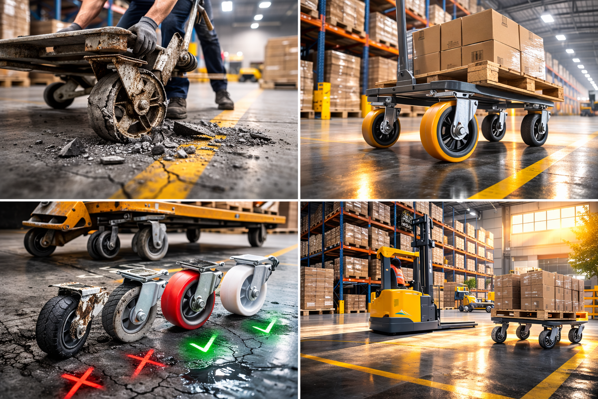 Когда на складе ломается техника — это заметно. Когда выходит из строя тележка — это уже неприятно. Но когда изнашиваются или неправильно подобраны колёса, бизнес чаще всего просто «терпит». И именно в этом месте начинают теряться деньги. Большинство компаний относятся к колёсам как к мелочи: «поставим подешевле», «всё равно сотрётся», «любые подойдут».... Но если посмотреть глубже, колёсная опора — это: А значит — это элемент, влияющий на: На практике выбор часто сводится к: При этом игнорируются: В итоге все приводит к тому, что колёса быстро разрушаются, начинают люфтить, портят пол, увеличивают усилие перемещения. А сотрудники начинают прикладывать больше силы — что снижает эффективность и увеличивает усталость. Неправильные колёса приводят к: Особенно это критично на складах с интенсивным движением, производствах, логистических центрах, клининговом оборудовании. Иногда стоимость «дешёвых» колёс за год превышает стоимость качественного решения в 2–3 раза. Полиуретан, резина, ней